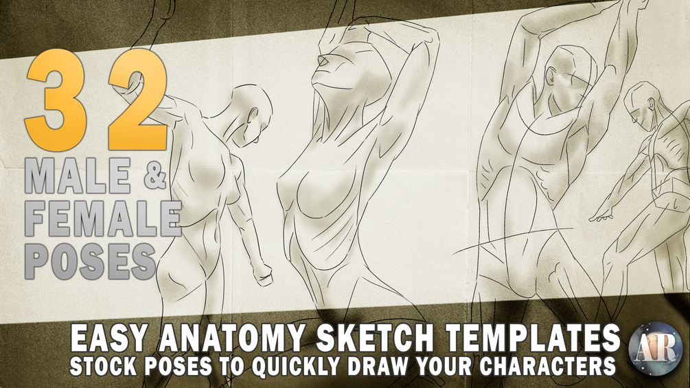 32 Easy Male & Female anatomy gesture pose templates
