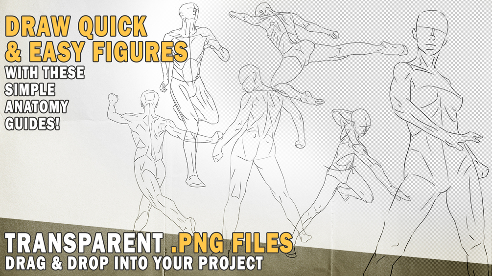 Use these PNG templates to improve your understanding of the human figure and skip the sketch process when you already have a gesture in mind for your drawing.