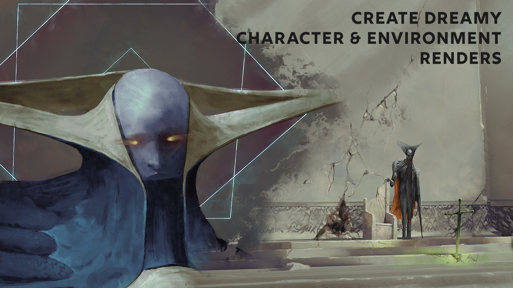 Using the Ethereal Textures Brush Pack you can make a full illustration in this beautiful soft style. From sketching and blocking in the background, to adding rocks, trees, paths, clouds, and anything else you can imagine in a surreal otherworldly style.